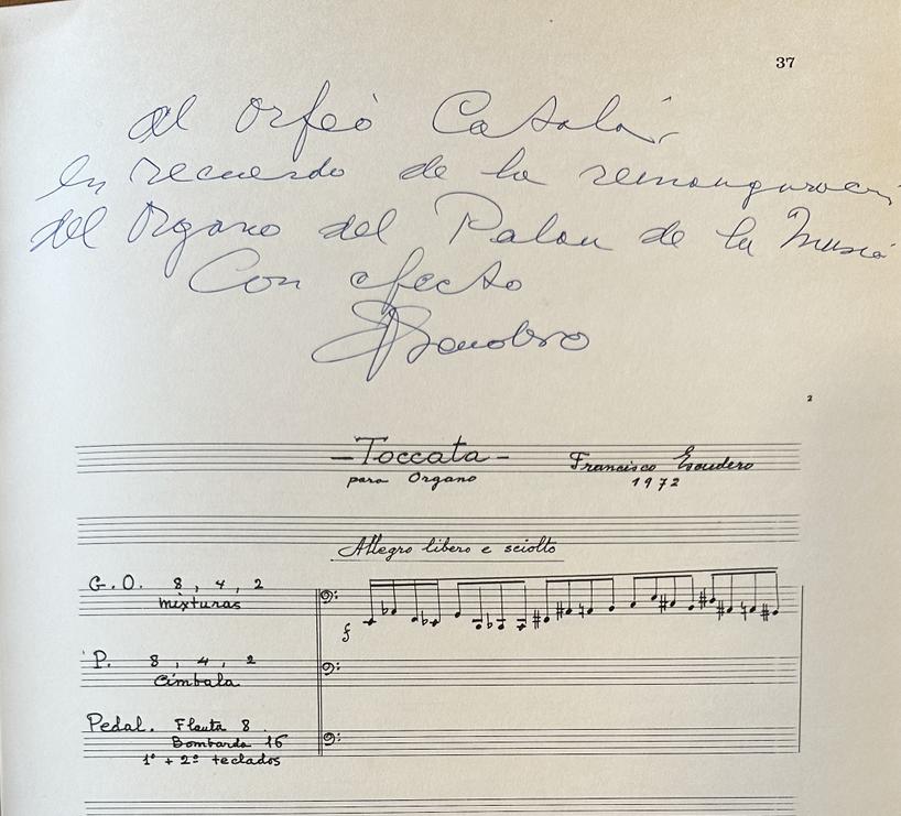 A més, per celebrar una ocasió tan esperada, la Direcció General de Belles Arts va encarregar una obra a cadascun dels dotze compositors espanyols més destacats del moment i en va editar la col·lecció en un àlbum comme- moratiu de tirada numerada. Les obres, les va estrenar Montserrat Torrent en un concert que va tenir lloc el 21 de febrer en el marc de la III Semana de Nueva Música que es va celebrar del 20 al 26 d’aquell mes en diversos escenaris de Barcelona. La dificultat de la cita, doncs, va raure en les grans diferències estètiques, estilístiques, tècniques, gràfiques i fins i tot de qualitat existents entre els dotze compositors seleccionats: Carles Guinovart —que va escriure Radiaciones—, Salvador Pueyo —Pensar—, Tomás Marco —Astrolabio—, Carmelo Alonso Bernaola —Pieza para órgano—, Lleonard Balada —Elementalis—, Ernesto Halffter —Tiento—, Òscar Esplà —Impromptu Rondino—, Frederic Mompou —Pastoral—, Manuel Castillo —Fantasía para un libro de órgano—, Josep Soler —Grave—, Xavier Montsalvatge —Aureola para una imagen de Ramón Amadeu— i Francisco Escudero —Toccata para órgano.