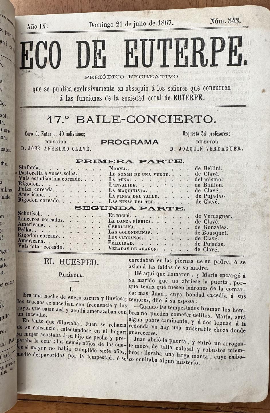 Col·lecció de revistes «Eco d’Euperpe». Diari iniciat el 1859, promogut per Josep Anselm Clavé, amb què s’acompanyava l’entrada dels assistents als concerts de la societat coral Euterpe als Jardins d’Euterpe a Barcelona. 1865-1885.