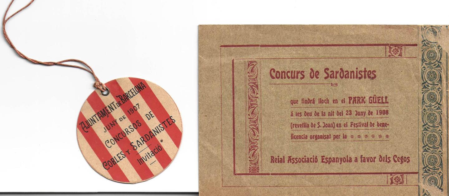 Programa del concurs de sardanistes al Park Güell, juny de 1908. El jurat va estar format per Francesc Cambó i Francesc Pujol, entre altres personatges.