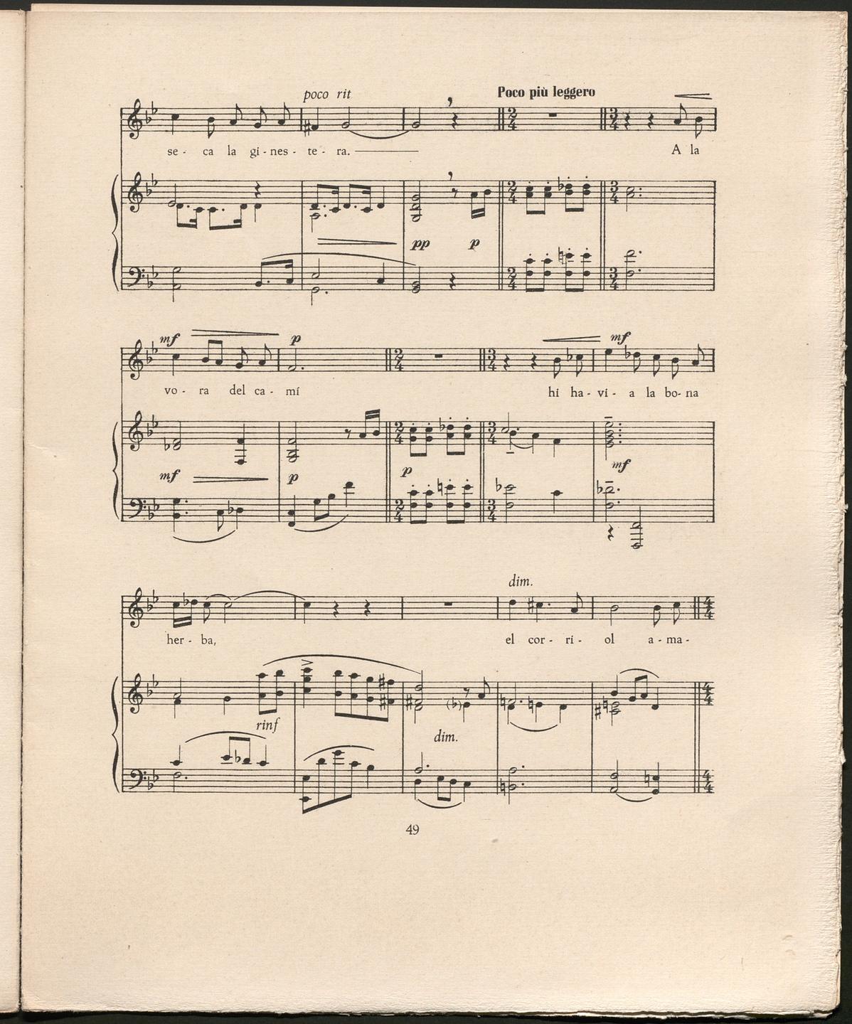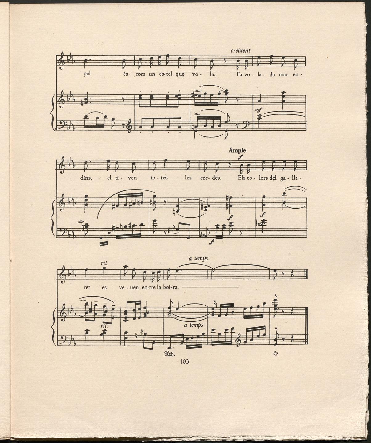 Al costat de cada poema s’indica la galeria d’imatges corresponent, on es pot veure la partitura de cadascun d’aquests compositors.